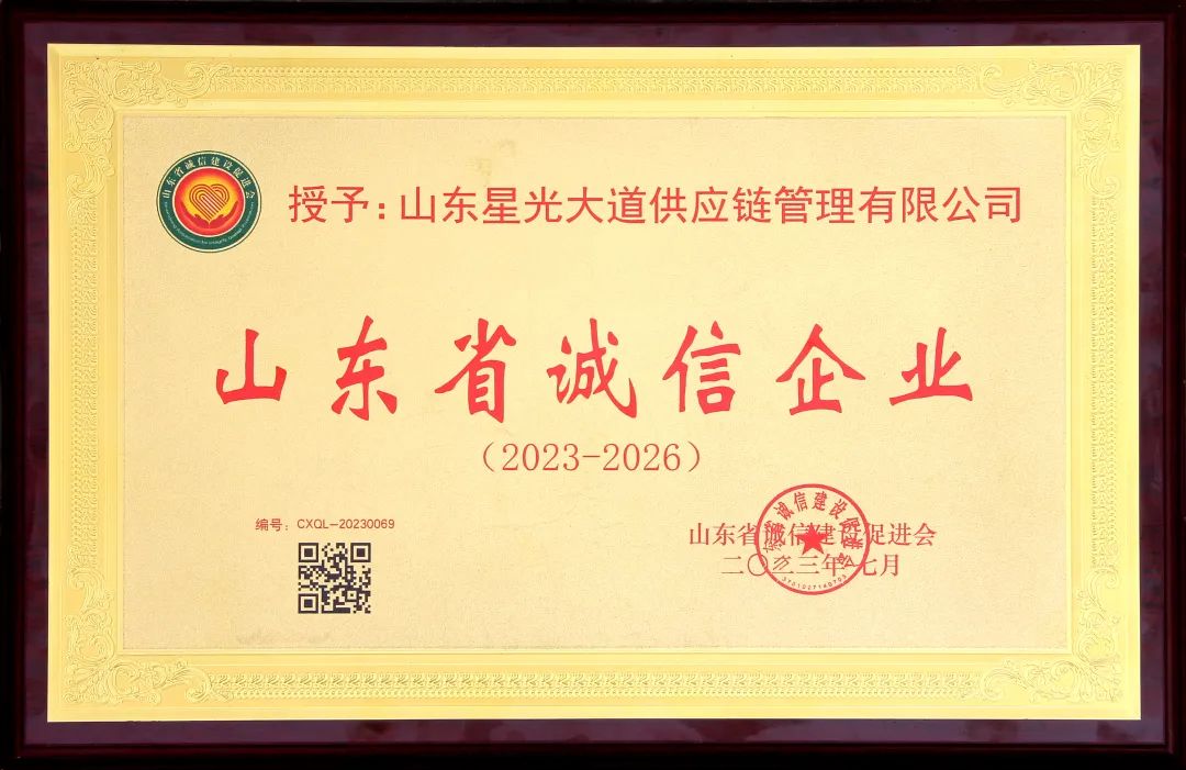8月9日至10日,由山東省工業(yè)和信息化廳、山東省市場監(jiān)督管理局指導(dǎo),山東省誠信建設(shè)促進會主辦的山東省企業(yè)誠信建設(shè)工作會議暨山東省誠信企業(yè)、優(yōu)秀誠信企業(yè)家等授牌儀式在煙臺隆重召開,山東星光大道供應(yīng)鏈管理有限公司榮獲“山東省誠信企業(yè)”榮譽稱號,公司董事長杜兆偉榮獲“山東省優(yōu)秀誠信企業(yè)家”榮譽稱號。